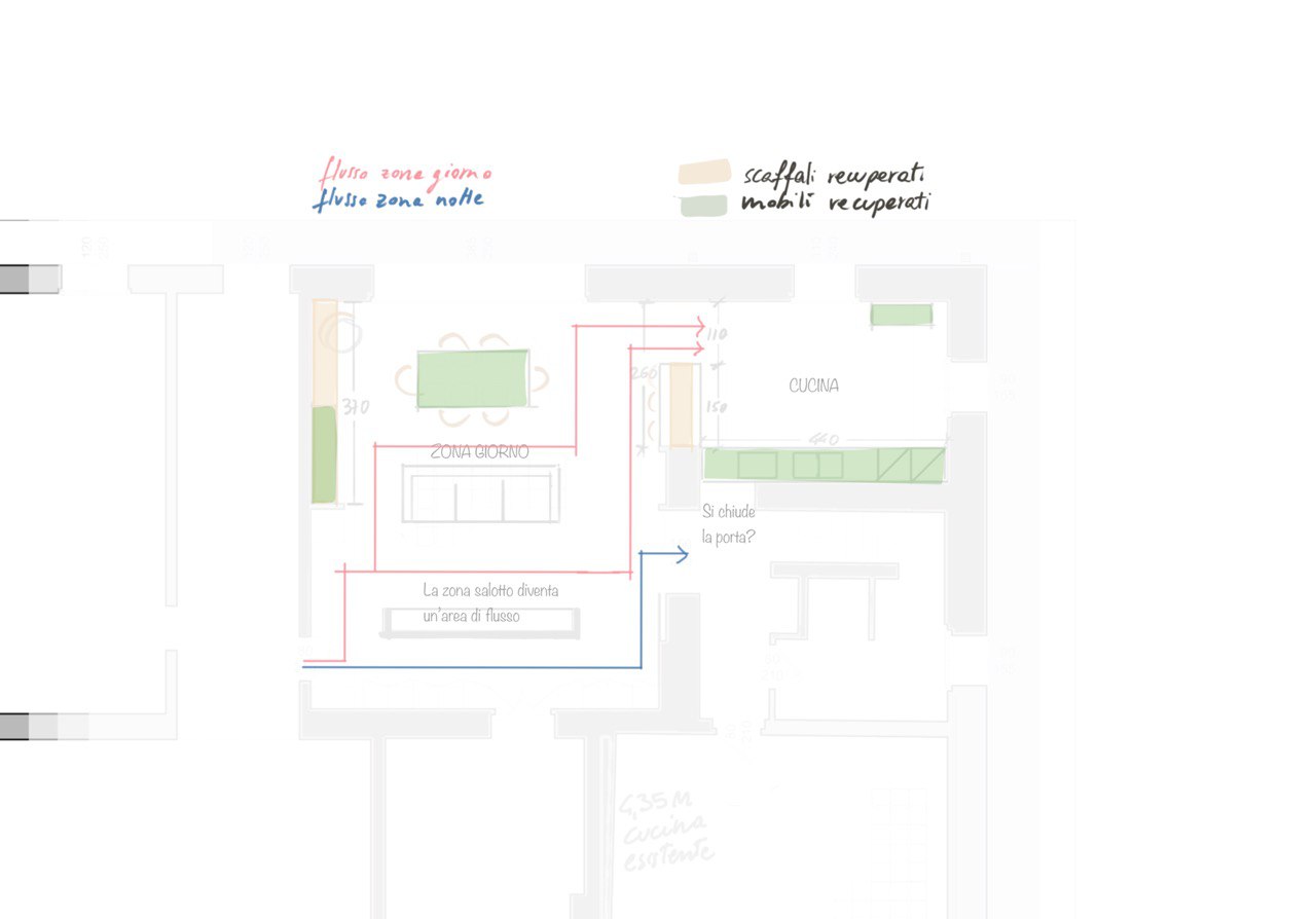 Come in ogni mio lavoro, il progetto ha preso forma attraverso il disegno a mano libera, uno strumento che uso per immaginare, studiare e connettere ogni elemento della casa in modo personale.