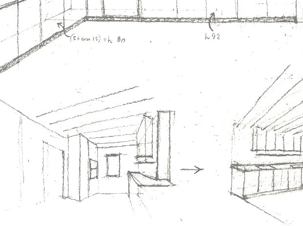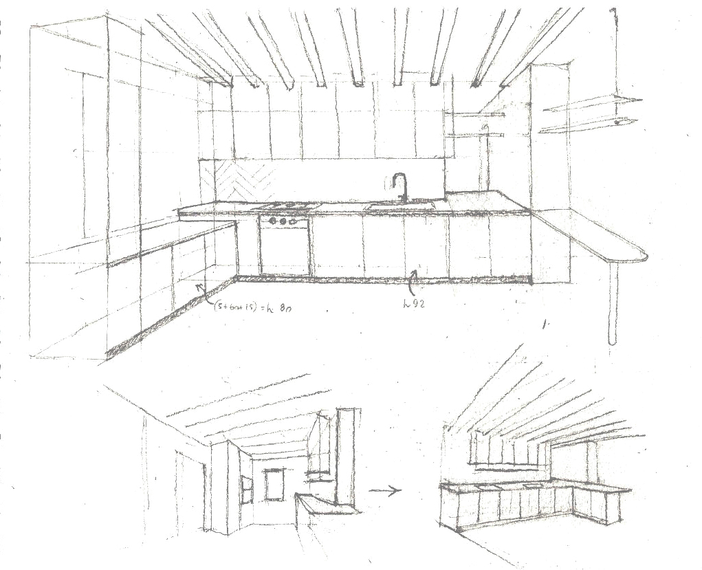 Anche nel caso di Casa MB, ho utilizzato schizzi e prospettive per progettare arredi su misura e definire le connessioni tra gli ambienti.