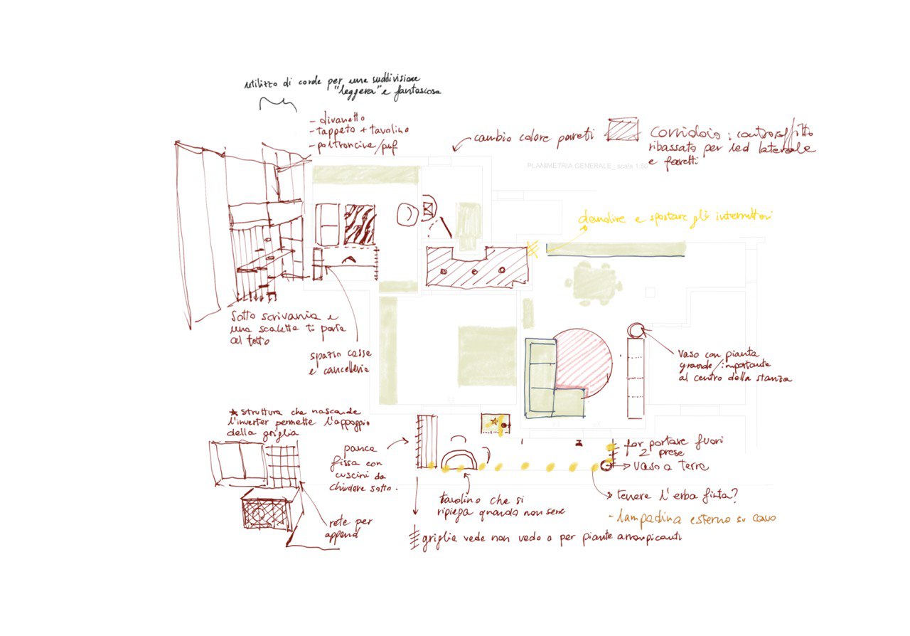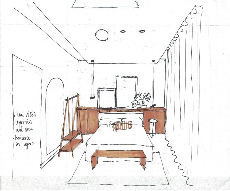 Il disegno a mano libera è stato il punto di partenza: uno strumento di pensiero e intuizione. Attraverso il tratto, ho immaginato nuove connessioni tra gli ambienti e una disposizione più fluida.