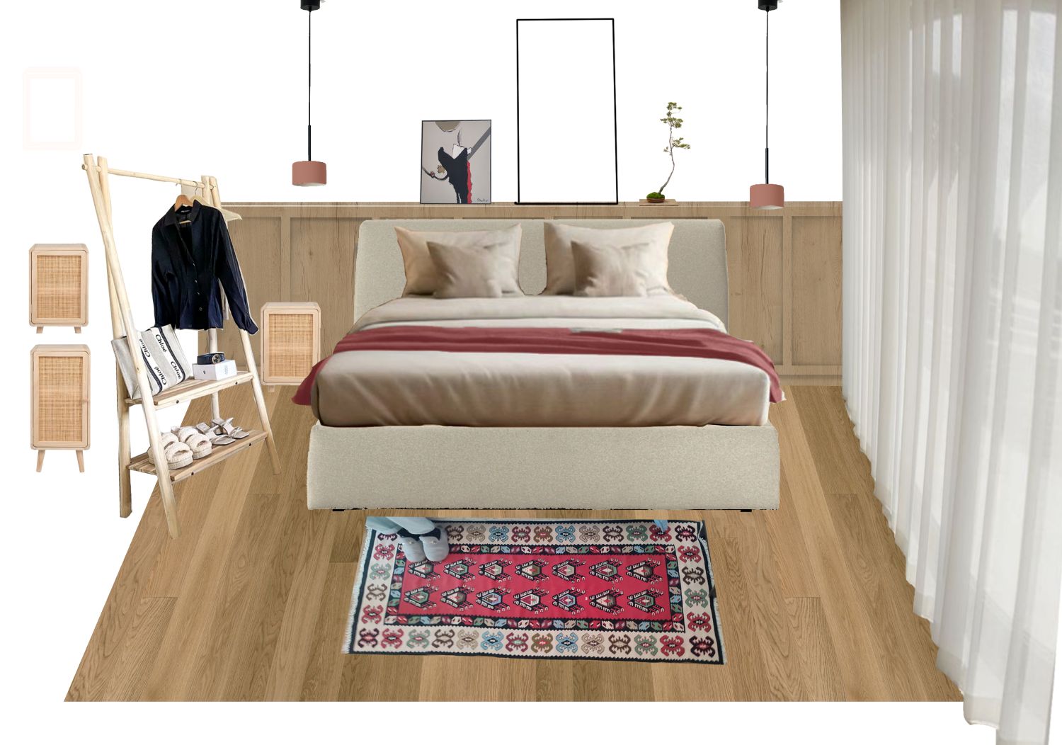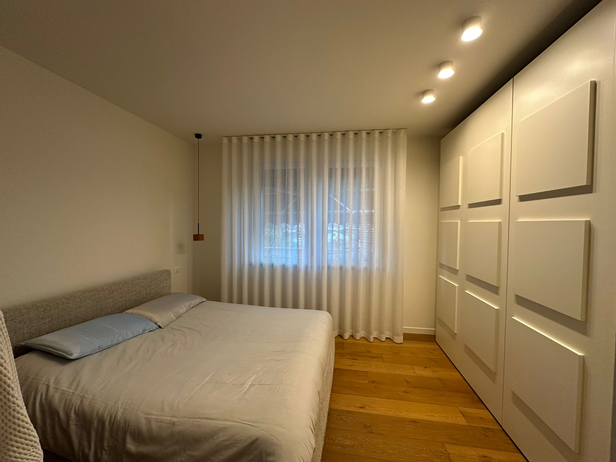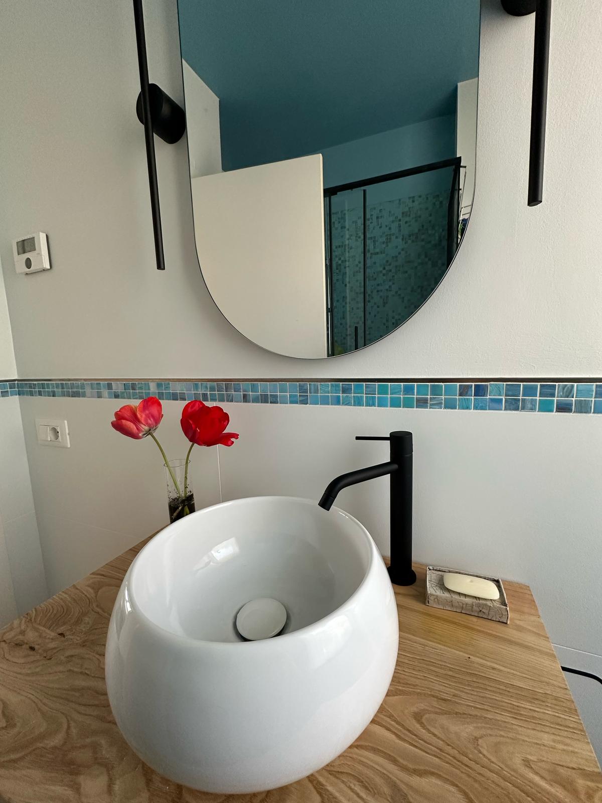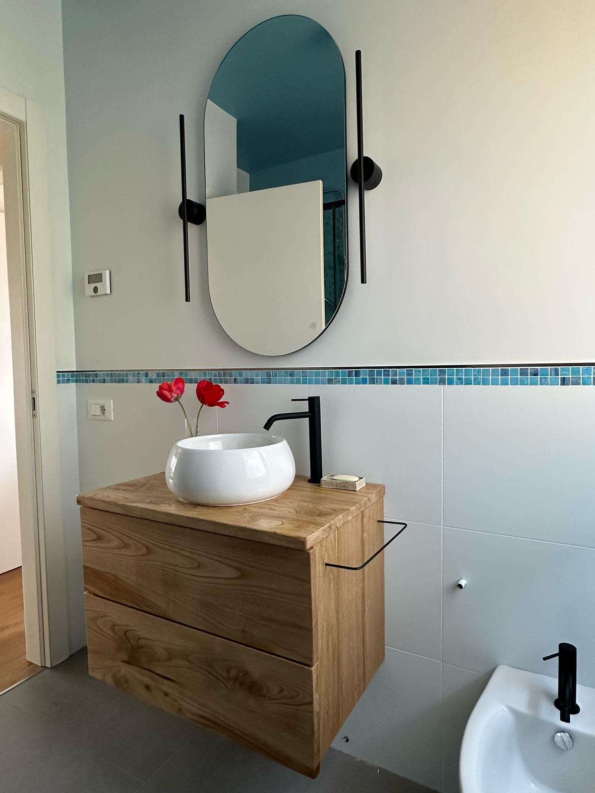 In questo caso, ho ripensato la zona giorno in chiave fluida e naturale, scegliendo materiali caldi e linee essenziali che uniscono funzionalità e la filosofia giapponese del Wabi Sabi, che per me è poesia.